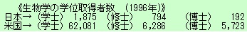 大学で生物学を専攻している学生の数だけで、これほどの大差がついているのだ。