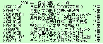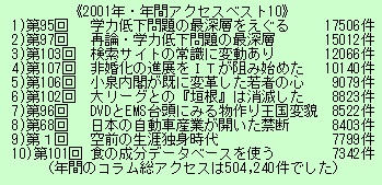 2001年は読者の皆さんといっしょにコラムを作る新企画「読者共作」を試みました。ベスト10に2本も入っています。