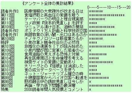 「学力低下問題の最深層をえぐる」と「再論」は、例えばgoogleで「学力低下」を検索して得られるリストで、最も目立つ位置に置かれる状態がずっと続いています。公開当時に本当にあちこちで話題にしていただいた影響がまだ続いている訳です。続きを2001年の作品が固めていますが、「小泉内閣」や「大リーグ」が入って読者投票のランクとは少し違います。ネットで話題になった度合いは、アクセスランクの方が反映しているようです。