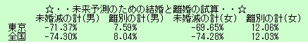それに、東京の1995年分が含まれる「東京都統計年鑑 平成9年」を利用した。なお、元データの「総計」には4区分以外に「配偶関係不明」が含まれ、これによる誤差が無視できないほど大きい。私の分析には自分で集計した4区分総計を使い、百分率を出している。正式には単位は「ポイント」だが「%」と同じ扱いとした。