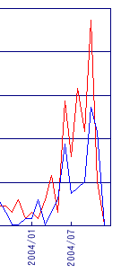 ABO式血液型による性格分類は、日本人のかなりが無意識に信じている面があって、ブログ上でも肯定派と批判派とに分かれる。いちいち数える訳にいかないと思っていたら、東工大奥村研が開発、提供している「blogWatcher」に参考になる機能を見つけた。キーワードの評判情報、つまり好悪の表現がブログ上に現れた数をカウントし、時系列グラフにしてくれる。ここに「血液型」を入れて調べたのが左のグラフだ。赤がポジティブ、青がネガティブな表現が現れた数である。検索の仕組みを考えると直ちに赤が肯定派、青が批判派にはならないものの、1ヶ月で6回も血液型を巡る特集番組があった10月がポジティブのピークで、11月になると急落しネガティブが上回るようになる。