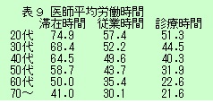 上では「休憩時間」と表現されているが、別の所では「待機時間は通常労働時間とは認められていない」とあり、直接の医療行為をしなかった夜勤・当直時間も除外されていると考えられる。産科なら妊婦が産気づいてから出産本番までの相当時間は待機になろう。男性医師の勤務実態が病院での滞在時間、教育指導・会議などまでの従業時間、実際の診療時間として調べられている。