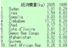 失敗国家群について10年前、1995年の紙消費量と比べてみた。
