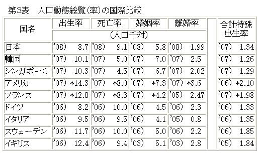 「第3表人口動態総覧(率)の国際比較」を以下に引用します。