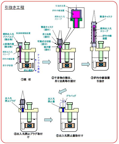 日本原子力研究開発機構が16日に発表した引抜き工程は次の図です。