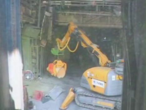 次は3号機の入り口付近、爆発の威力で鉄骨が折れ曲がっています。下に見える入り口の前を除去していったそうです。
