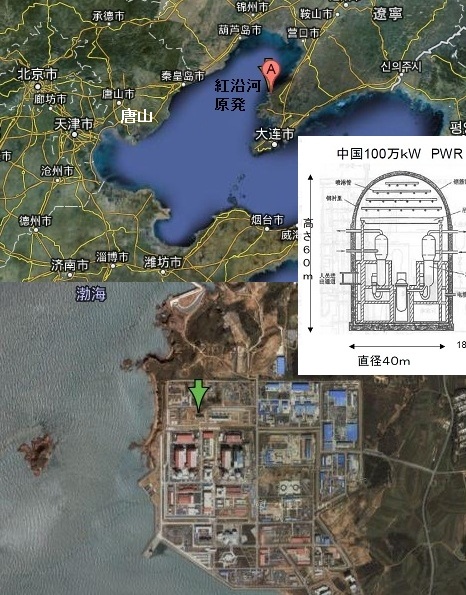 紅沿河原発だけでさらに5基が計画、建設中で、上の航空写真(グーグルアースから)見てもかなり進行しています。紅沿河サイトは地震などの心配はないのかと言えば、渤海を隔てた唐山市が1976年に大地震に襲われ壊滅的大被害を出しました。中国では大津波は少ないとされますが、それがあてにならないことは東日本大震災で経験済みです。