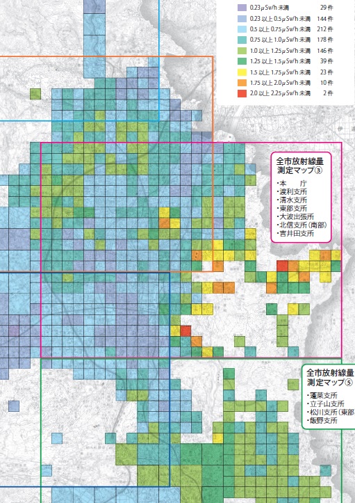 唯一見つけられる記事は福島民友新聞の「毎時1マイクロシーベルト未満95% 福島市放射線量マップ」です。「市内全域の平均測定値は毎時0.56マイクロシーベルトと昨年3月のマップの平均値より0.21マイクロシーベルト下がり、除染計画目標値の毎時1マイクロシーベルト未満の区域が全体の95%を占めた」と、行政サイドの除染計画に沿った目線で書かれています。