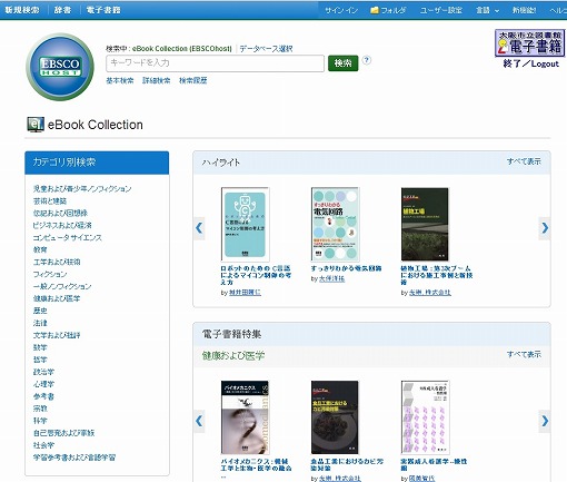 電子図書館という夢が少し現実味を帯びてきました。理想はどこにいても利用できる巨大ネット図書館ですが、既存図書館での電子書籍拡充が本格化しそうですし、11県から地域図書の無料ネット配信が始まりました。青空文庫のように著作権切れを待つのでは、もどかしくて堪りません。公共のサービスとしてもっと良質な提供が望まれます。わたし個人は図書館に行かなくても自宅のパソコンから図書館の電子書籍が読める大阪市立図書館電子書籍を1年ほど使っていて、下にその利用トップ画面を引用しておきます。