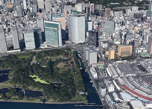 グーグルが16日に首都圏と宮城県エリア分を公開した3Dマップを試しました。空中散歩感覚は取材時にヘリやサイテーションに乗った時に近く、極めて精巧です。矢印キーでどこまでも空を飛び続けてみてください。45度斜め上から見た視野が連続合成されていきます。家1軒、木々1本ずつまで立体的に見せてくれます。「Google Earth」「Google マップのEarth ビュー」「モバイル版 Google Earth」で見られるので、移動しながら自分の現在地を空から見るのも面白そうです。馴染みがある場所4つ、東京駅から皇居、新宿副都心、築地市場から浜離宮公園、東京湾のお台場付近を以下に切り出してみました。