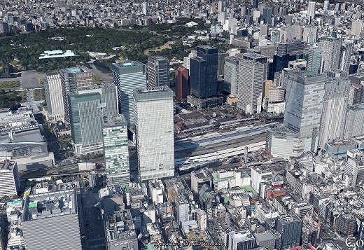 《東京駅から丸の内ビル街、皇居》