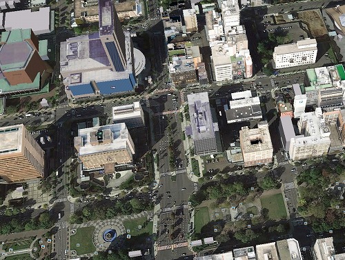 昨年1月の『本格的に空中散歩が味わえるグーグル3Dマップ』では東京の丸の内や新宿などの写真を引用しました。グーグルアースの地名検索で該当の都市に行ったら、マウスのホイール操作などで拡大してください。たくさんある写真のマークにカーソルを合わせると現場の写真が見られます。