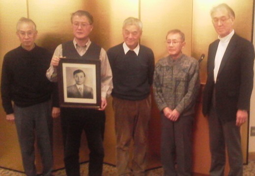 泉佐野市のホテルで開かれたサヨナラ懇親会での写真です。左から海老沢徹さん(77)、亡くなった瀬尾健さんの遺影を持つ今中さん、川野真治さん(74)、小林圭二さん(76)、それに昨年まで現職だった小出裕章さん(66)の5人が並びました。皆さんそれぞれとの様々な取材経験が脳裏に駆け巡りました。(参考サイト:原子力安全研究グループホームページ)