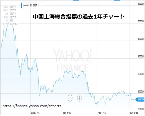 上海株式総合指標の過去1年間チャートをヤフーファイナンスから引用しました。昨年6月の大暴落から何度もテコ入れをしても結局は下がり続け、当面の落とし所と目論んでいると言われる「3000」をも割り込んでいます。昨年7月の第490回「中国の無謀な株式市場介入に海外批判止まず」で指摘したように「市場に任せるしか無い」のに、全く逆方向に介入と統制一辺倒で進んできた結果です。