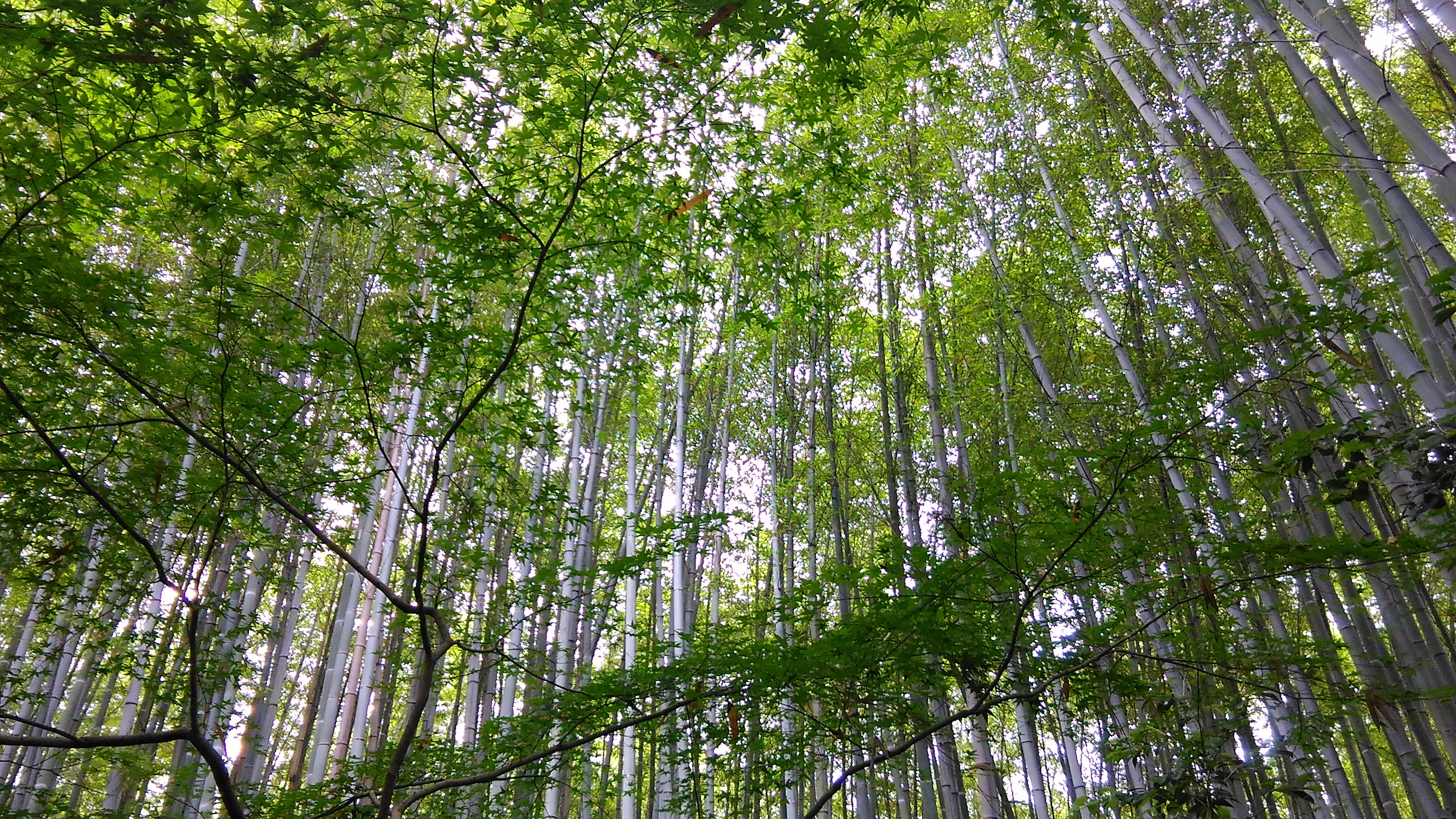 嵯峨野、竹林の道です。雨上がり、こぬか雨が降る状態でした。