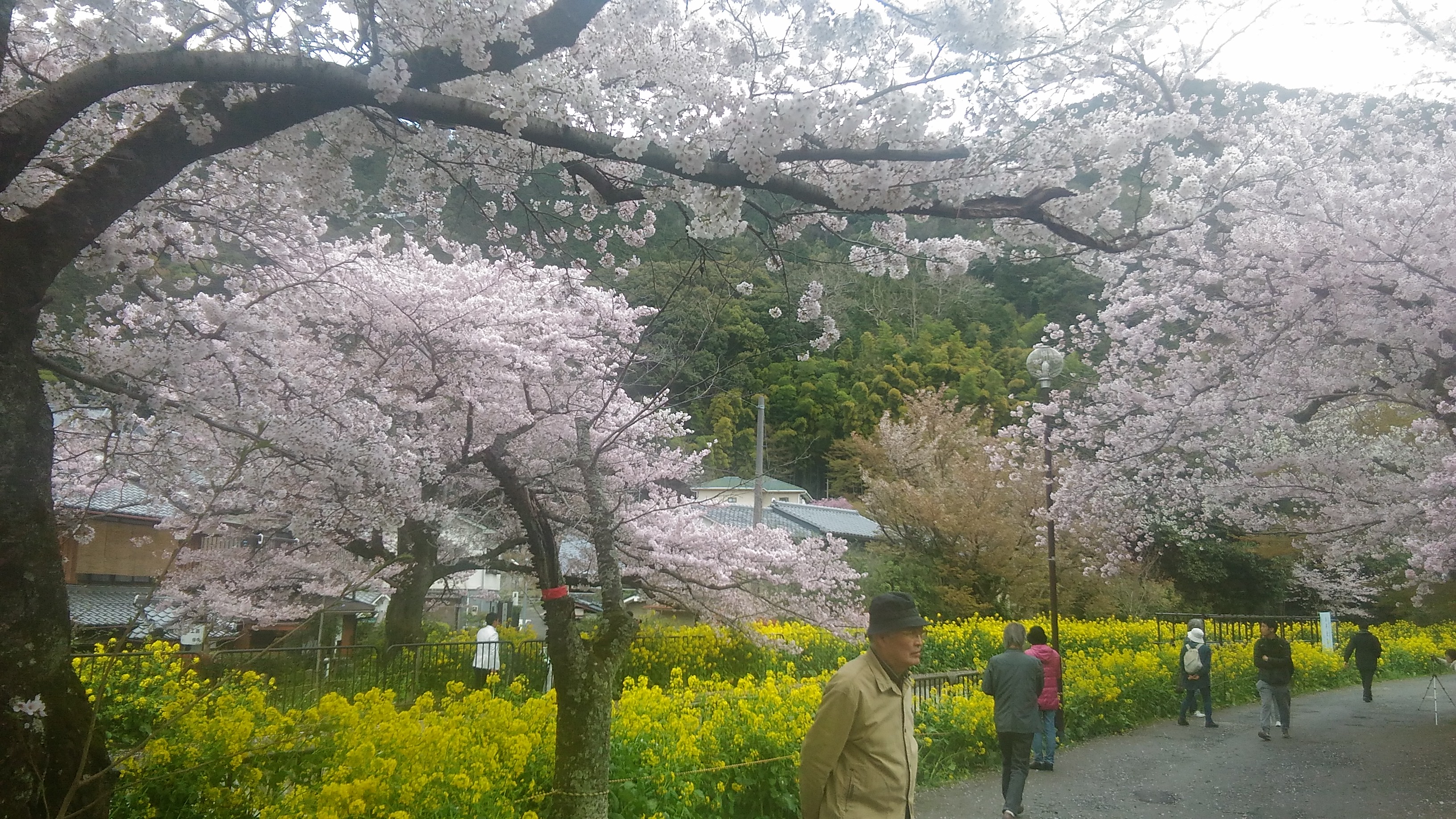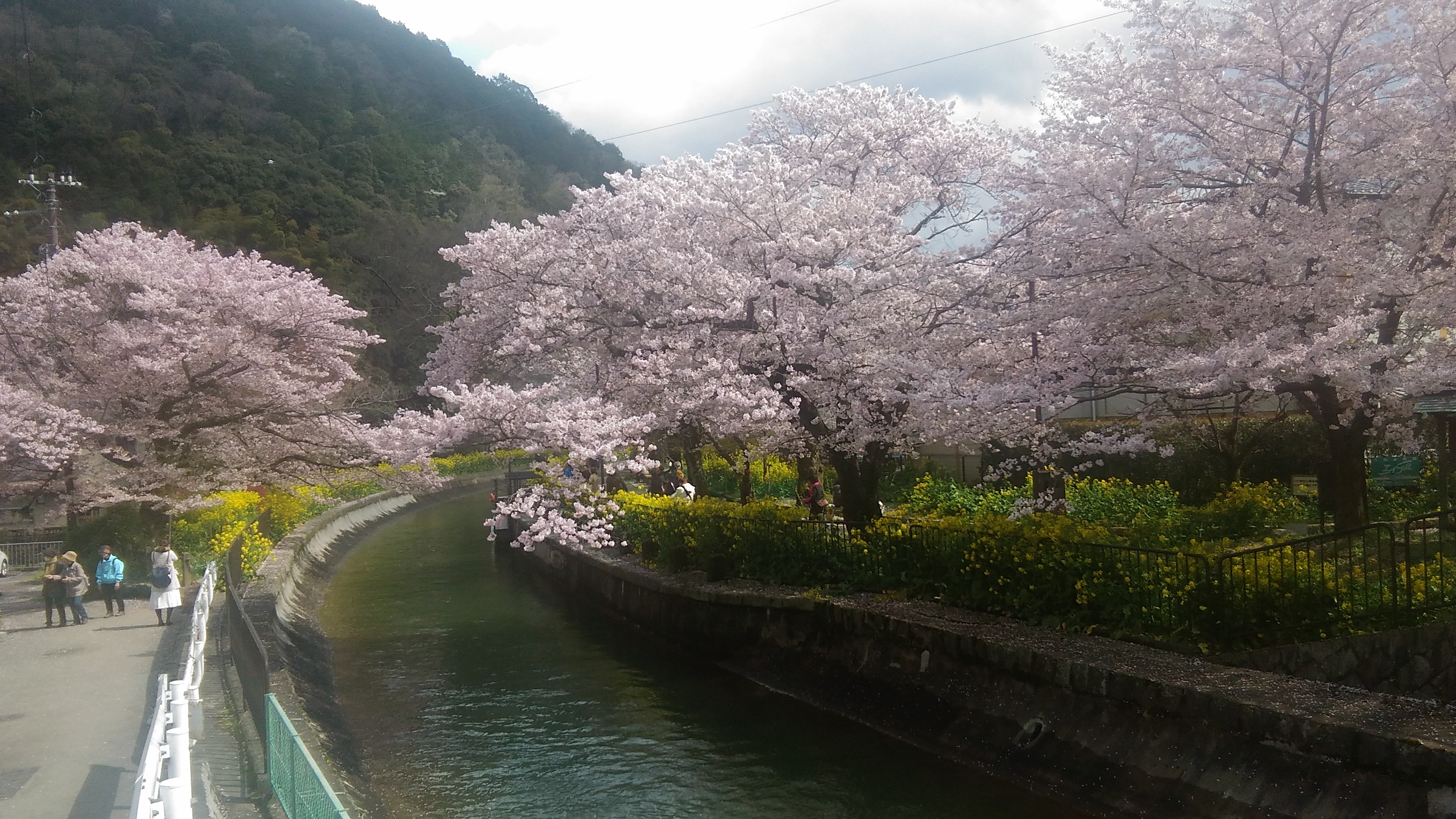 山科疏水では黄色い菜の花との競艶が有名です。