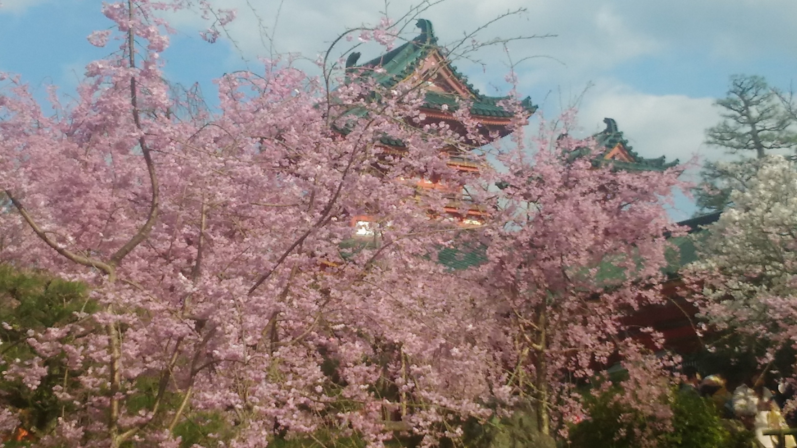 今年の関西はサクラ満開になっても悪い天気が続いていました。12日は午後から日差しがあると知って、良い発色のサクラを見たいと京都に行ってきました。コースは山科駅から歩いて毘沙門堂の枝垂れ桜と菜の花も咲いている山科疏水、地下鉄で北上、洛東・平安神宮の神苑に200本余りある紅枝垂れ桜、直ぐ近くの岡崎疎水です。やはり太陽があると花の輝きが違います。