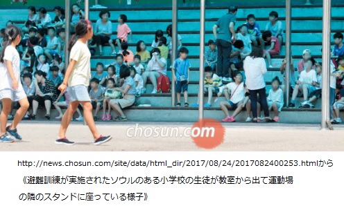 もちろん運動場は相手が長距離砲であれミサイルであれ核爆弾であれ危険極まりない場所です。地下施設に避難するのが当然ですが、朝鮮日報がソウル市内の小中高校45校に聞き取りした結果、地下施設がある学校は6校しか無かったそうです。ソウル市教育庁は地下避難施設がある学校の数を知らなかったと言い、早期に全数調査するそうです。現状では「ソウル市内の小中高校の児童・生徒約100万人が有事の際、敵の攻撃に最もさらされやすいことになる」わけです。