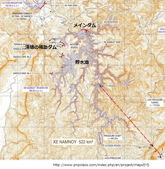 メインダムには問題が無いというのが関係者の証言ですが、大きな川が流れ込んでいない貯水池の水位は何処でもほぼ同じですから、弱い補助ダムを越流させるような全体設計が間違っていると指摘せざるを得ません。補助ダムの堤防はもっと高くなるべきでした。コンクリートダムに比べて貯水量に余裕を持たせるどころか、自殺行為をしています。また5カ月も工期を短縮してダム本体を完成させた報道は、アースフィルダム内部の土を固める作業を十分にしなかった恐れを感じさせます。