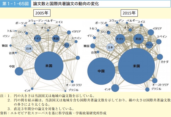 世界の《全論文数が2005年から2015年にかけて約80%増加しているにもかかわらず、日本からの論文数は14%しか増えておらず、全論文中で日本からの論文が占める割合も7.4%から4.7%へと減少しています》《他の国々は研究開発への支出を大幅に増やしています。この間に日本の政府は、大学が職員の給与に充てる補助金を削減しました》《各大学は長期雇用の職位数を減らし、研究者を短期契約で雇用する方向へと変化したのです》