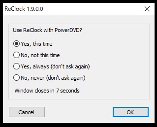 インストールとセットアップが終わったらPowerDVDを起動します。音楽やビデオを選んで再生しようとすると以下の画面が現れます。どの「〇」も選択されていなかったら「Yes,this time」にして「OK」しください。