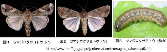 農林水産省に《ツマジロクサヨトウに関する情報》ページがあり、《極めて広食性なヤガ科の害虫であり、サトウキビ、トウモロコシ、イネ、豆類、いも類、野菜類等、80種類以上の作物に被害を与えることが知られています》としています。発見時には直ちに通報が呼びかけられています。