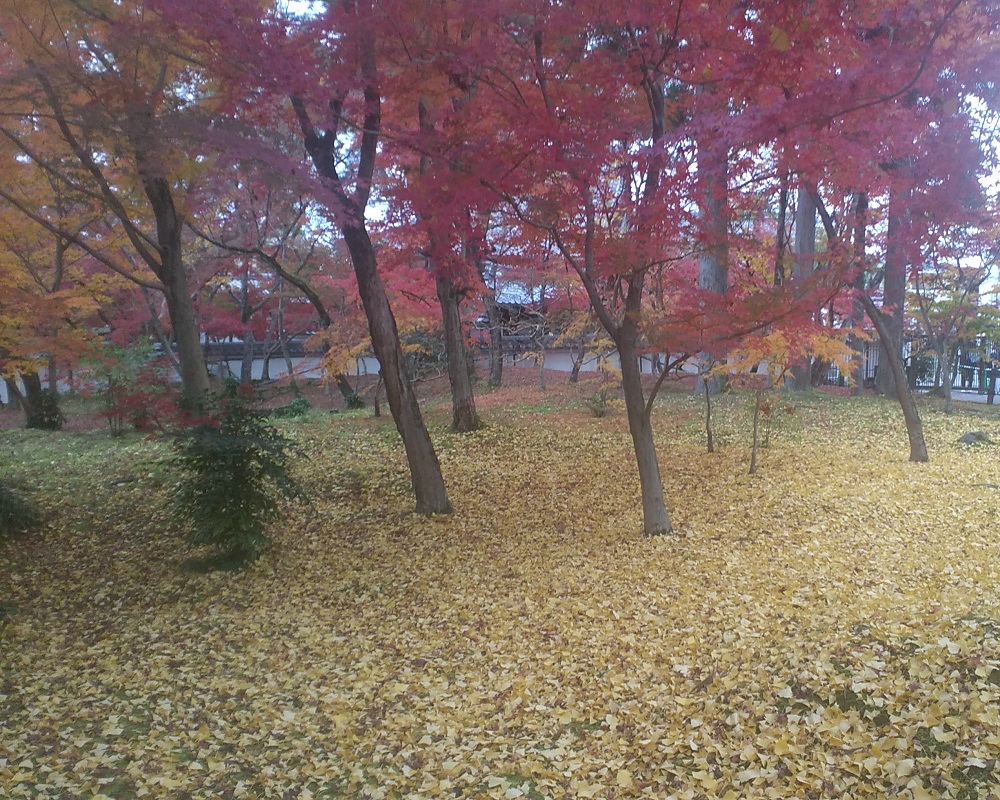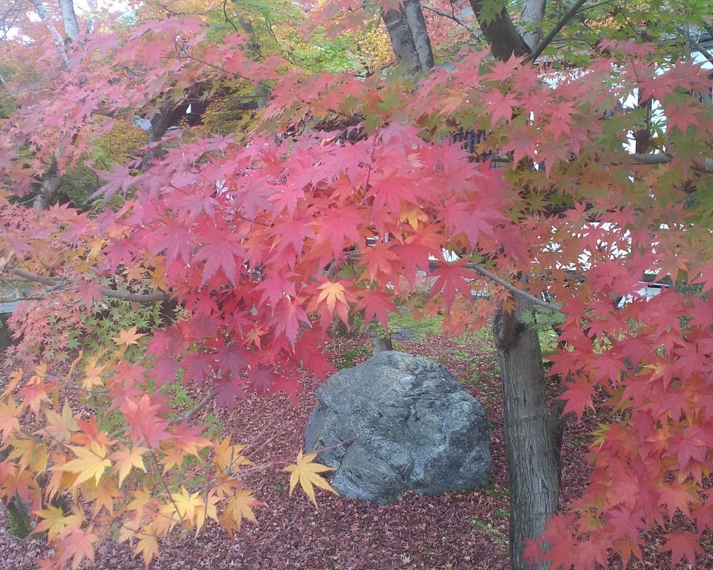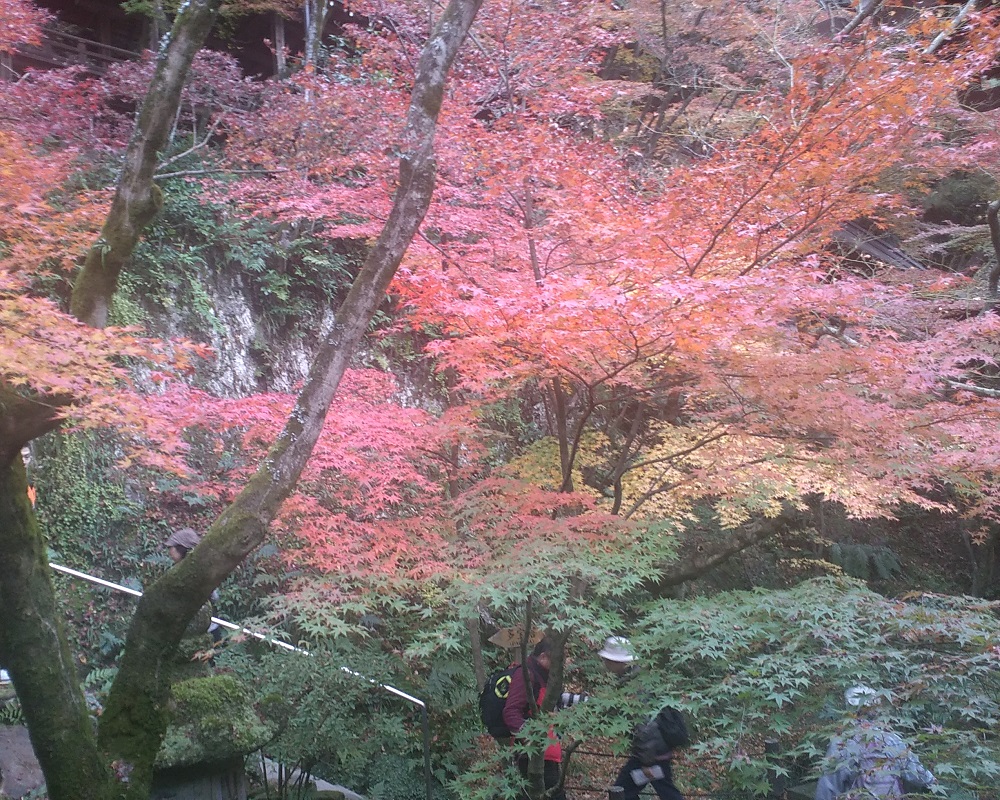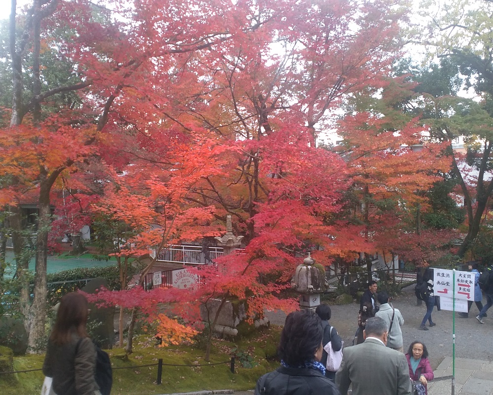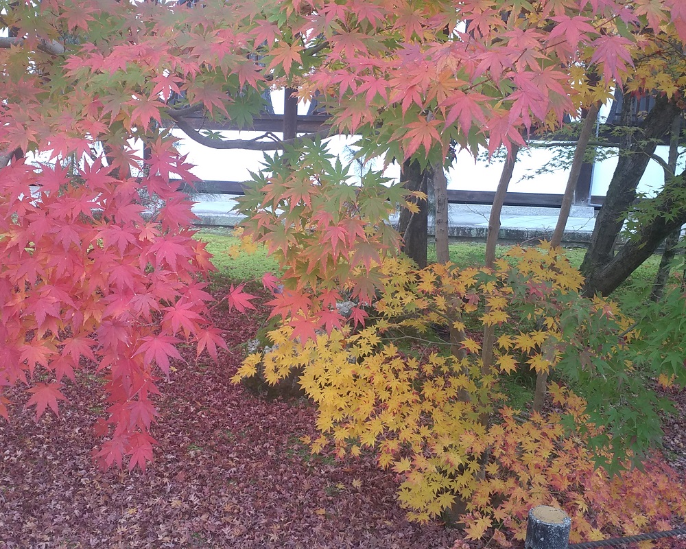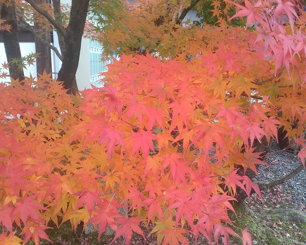 11/27に京都東山、永観堂禅林寺にモミジ見物に行き、初めて見るグラデーションの豊かさ、多彩ぶりに驚かされました。紅葉は木の本体が養分に富む葉緑素を葉っぱから回収した結果として起きます。回収途中の葉は一枚の中でグラデーションを見せ、日当たりなどの影響で隣の枝ともグラデーションを織りなします。まだ青葉があるモミジから深紅のモミジまで競演している様は、京都でも群を抜く3000本というイロハモミジやオオモミジがある永観堂ならではの景色です。