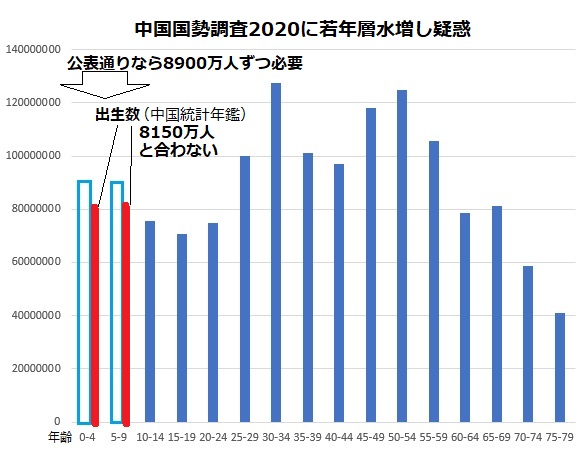 【5/19追補】大紀元18日付《中国、人口調査データに改ざん疑惑 「12億6千万人」との計算も 専門家「史上最悪」と批判》が中国国勢調査の疑惑について色々な専門家の厳しい分析と指摘を掲載しています。私も詳細な年齢別人口データが公表されたら過去の国勢調査と比較をしてみるつもりです。今回の若年層水増し問題に関しては最後に《一方、中国国家統計局は17日、「抽出調査は誤差があった」という理由で、抽出調査だった2011〜19年のデータを修正すると発表した。出生数は年平均で100万人ほど増えることを明らかにした》と記されています。