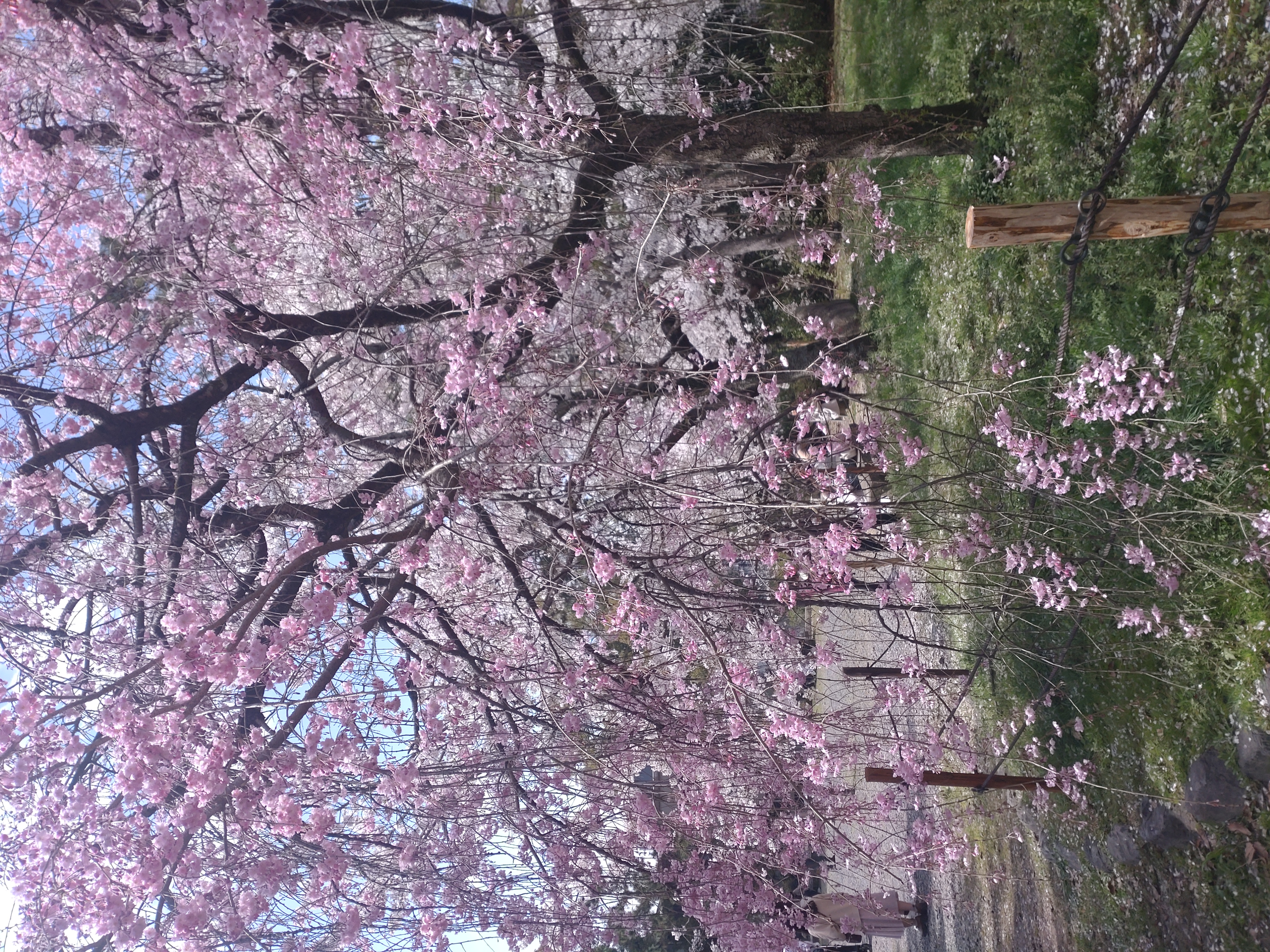 円山公園。あちこちにある紅シダレが綺麗でした。枝垂れ桜の大木も元気で、淡い色がありますね。