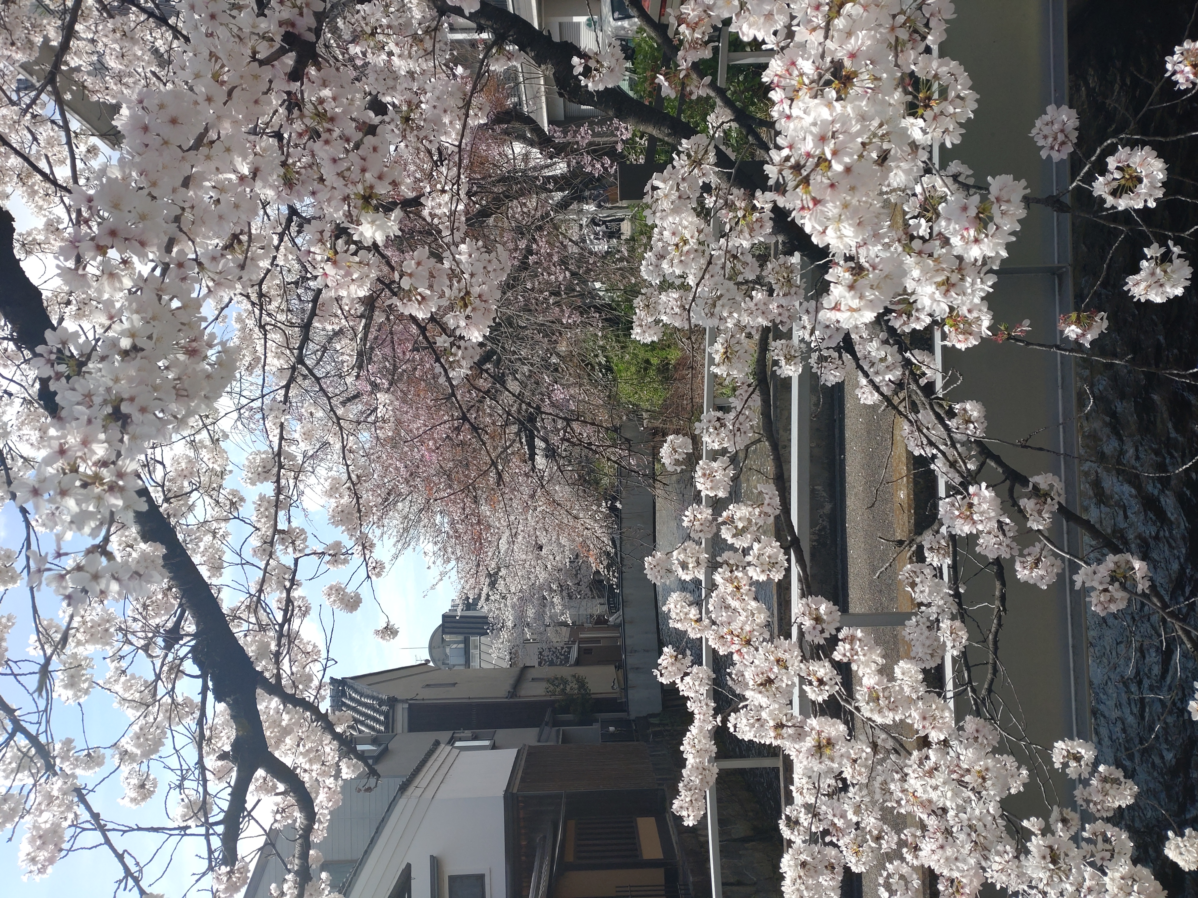 知恩院参道から祇園白川にぶつかって直ぐに撮れるサクラ一杯のシーン。