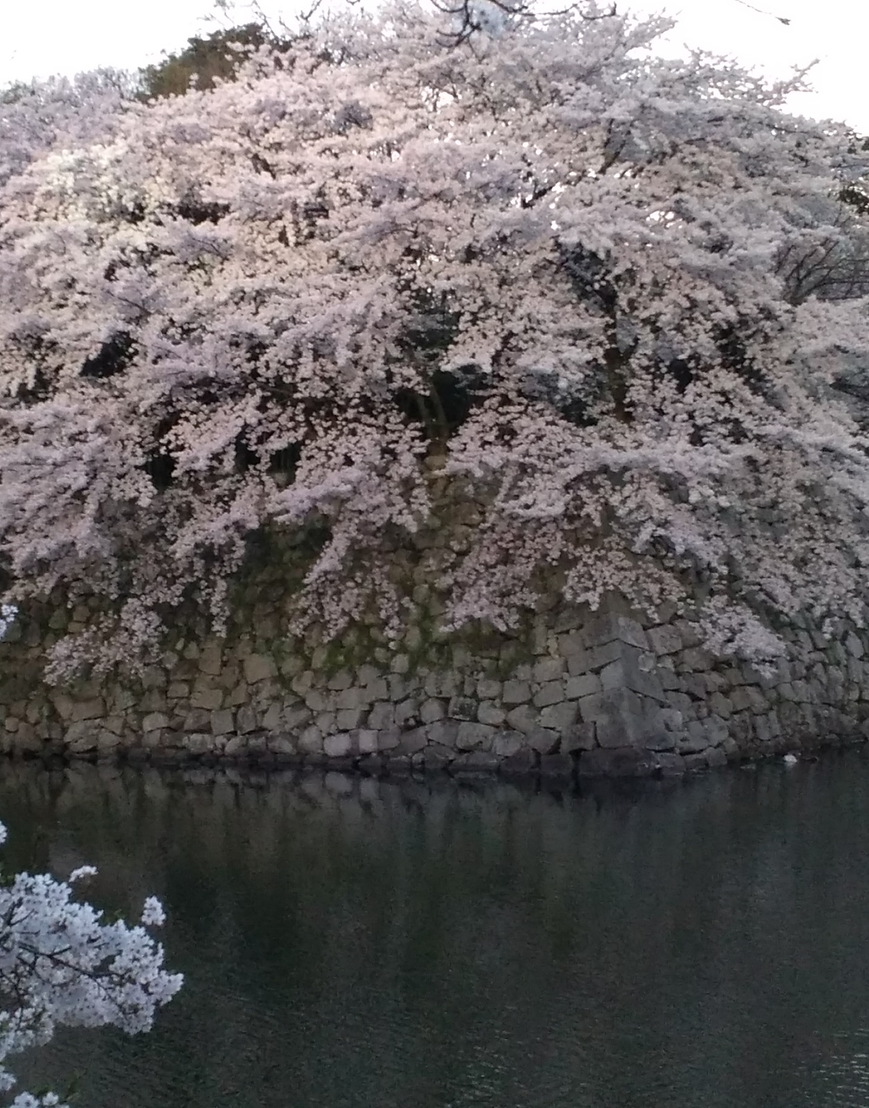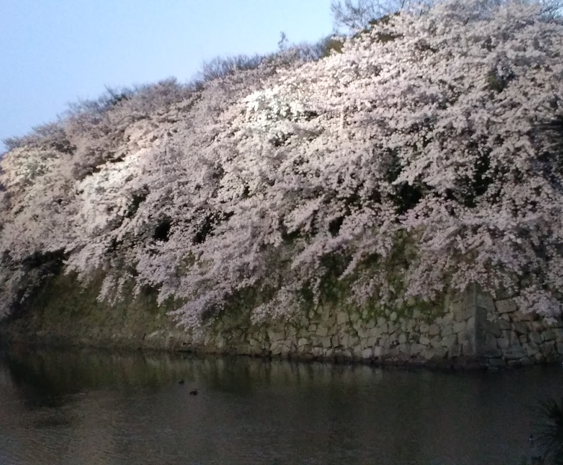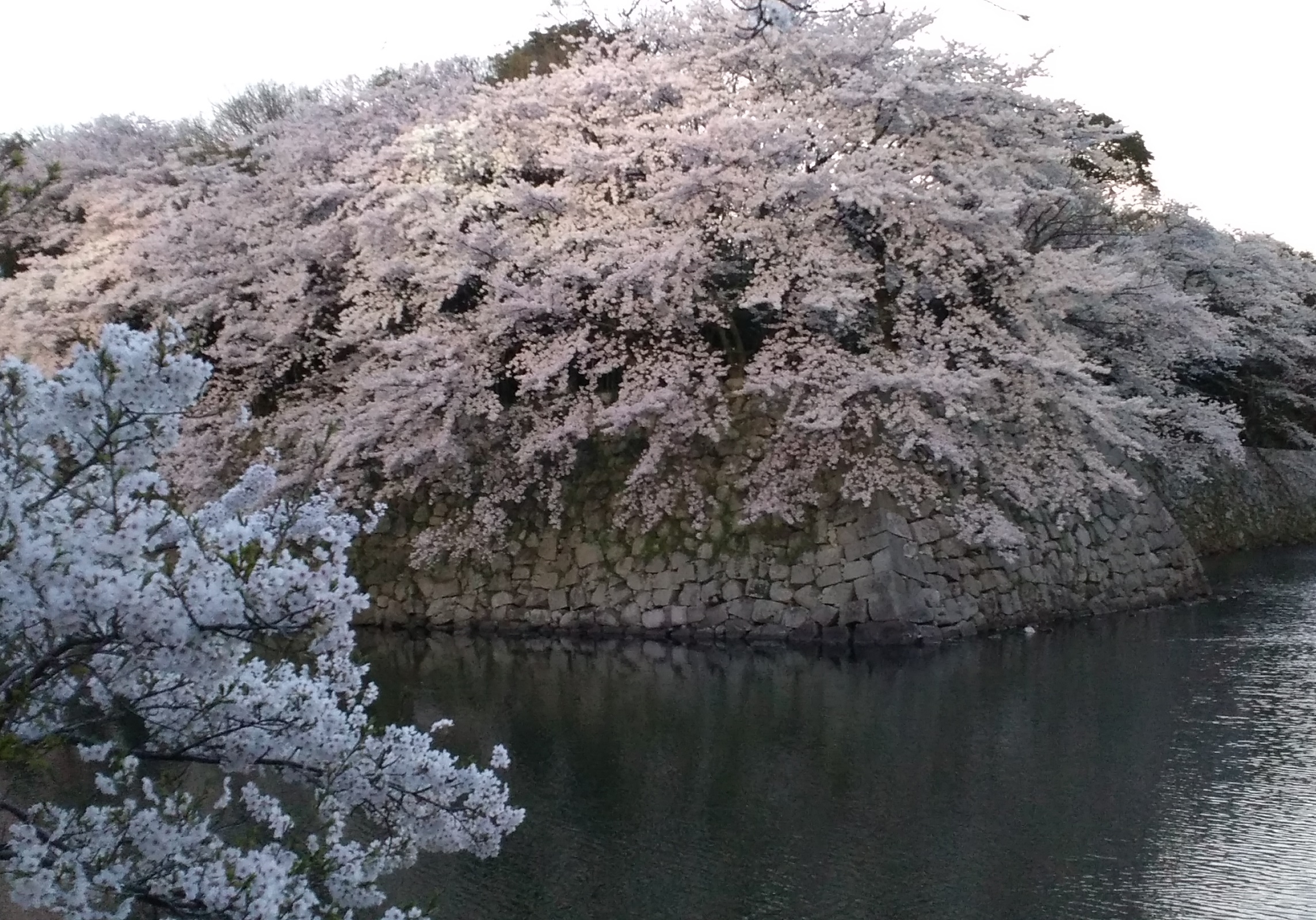 最後の1枚は白く輝く国宝の天守閣に向かって、桜が雪崩れ落ちている趣きで豪放です。2019年に再訪し、このカスケード光景が失われたの見て残念でした。