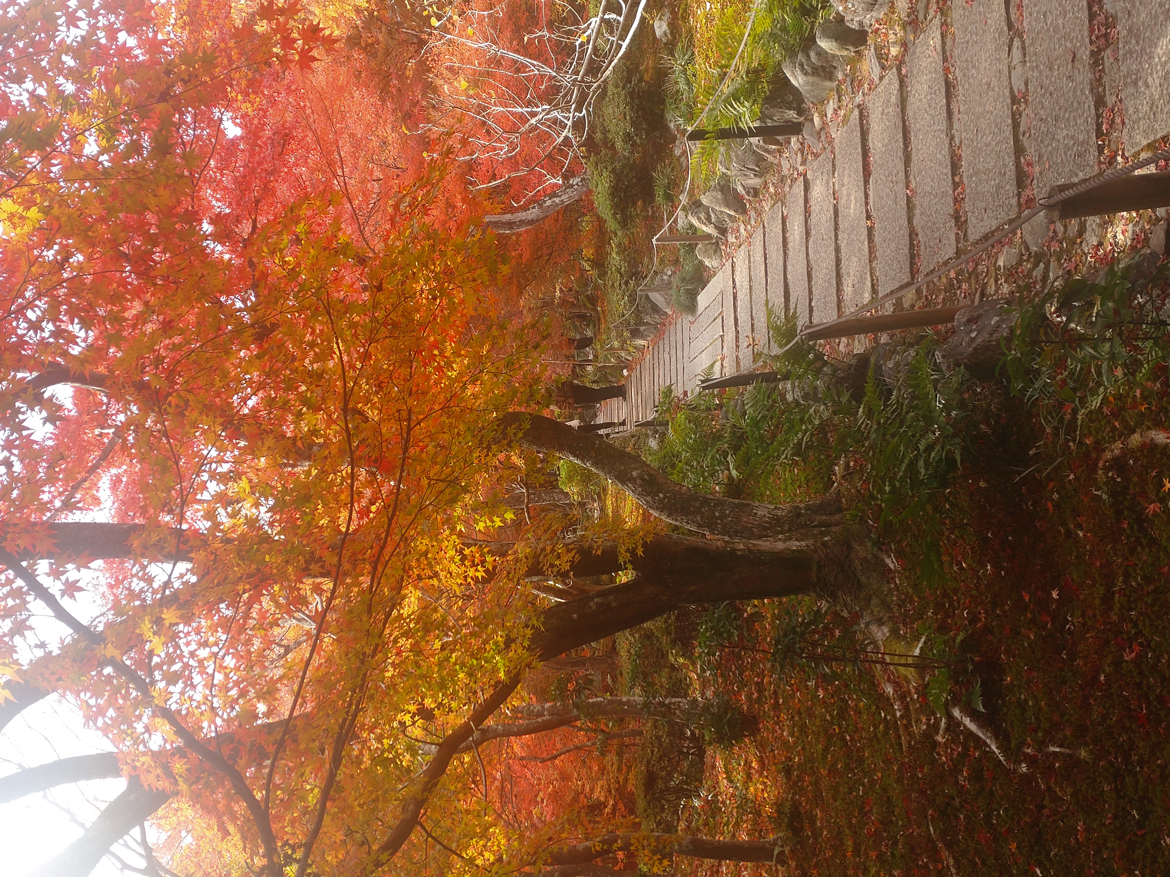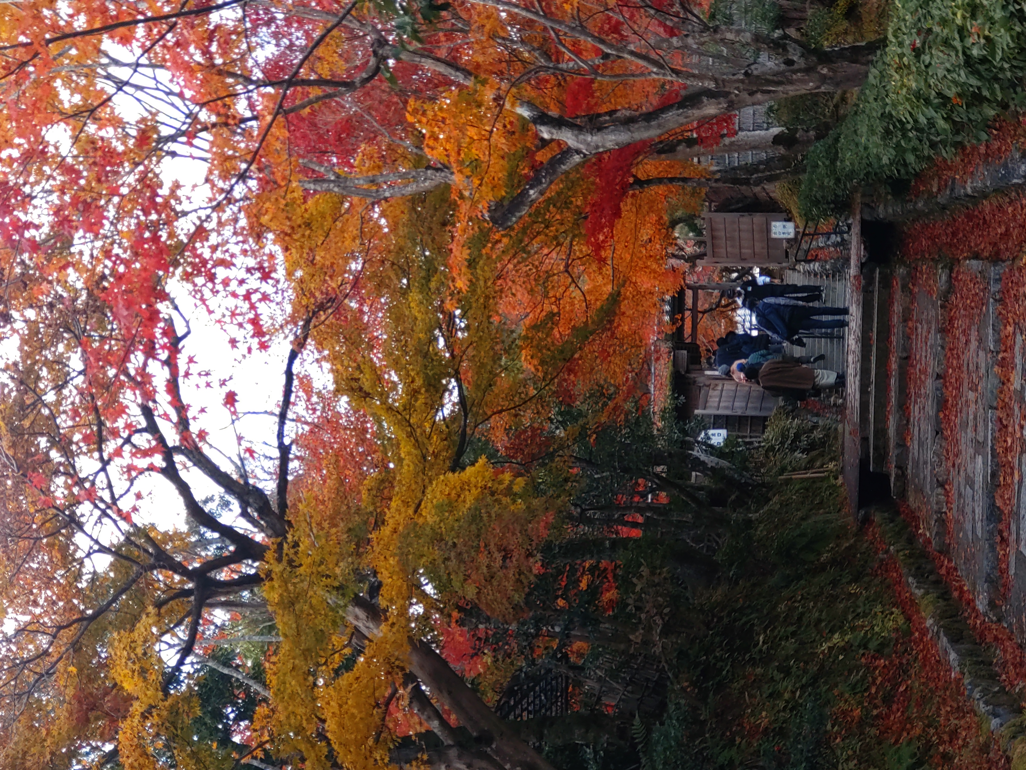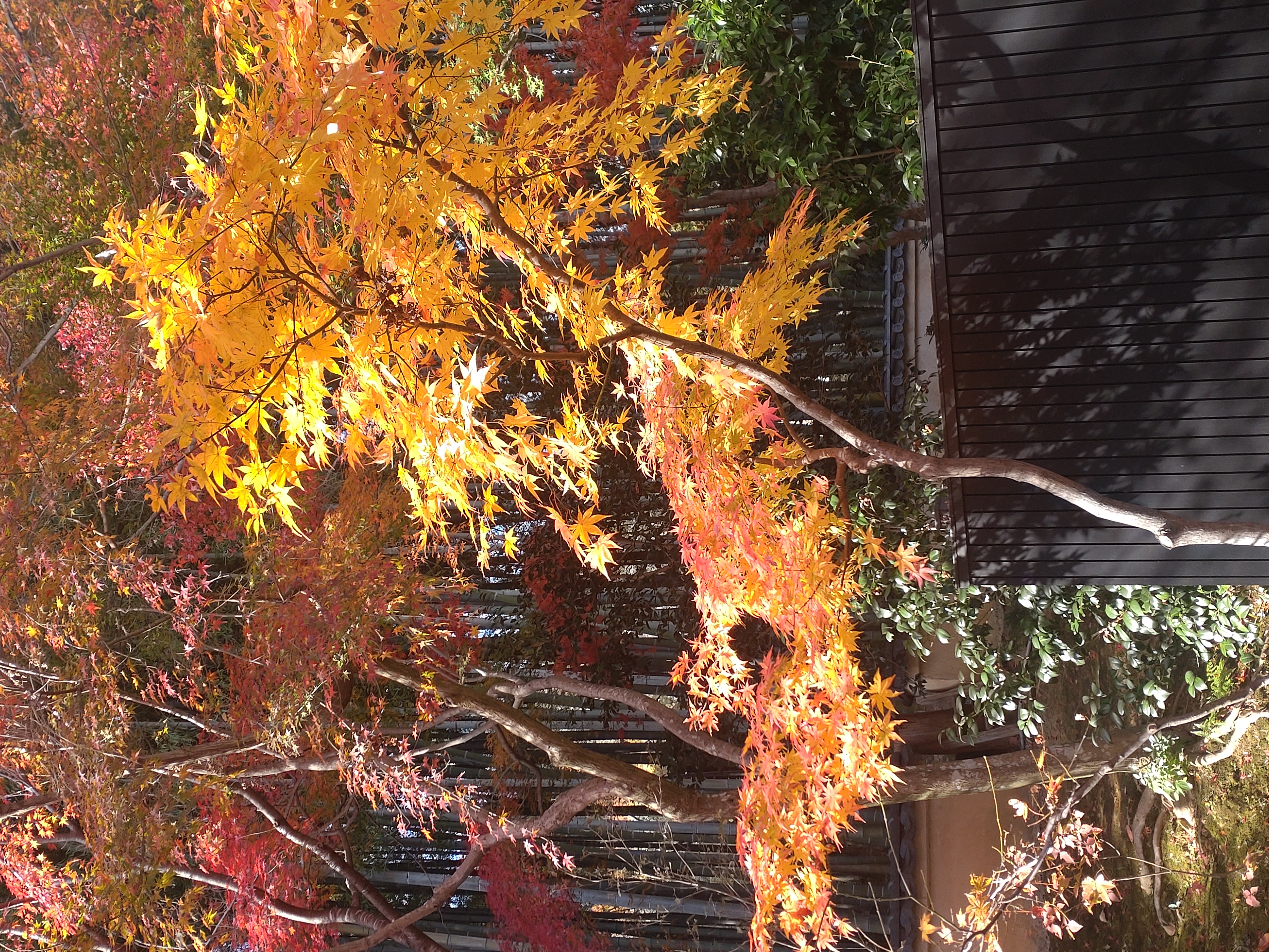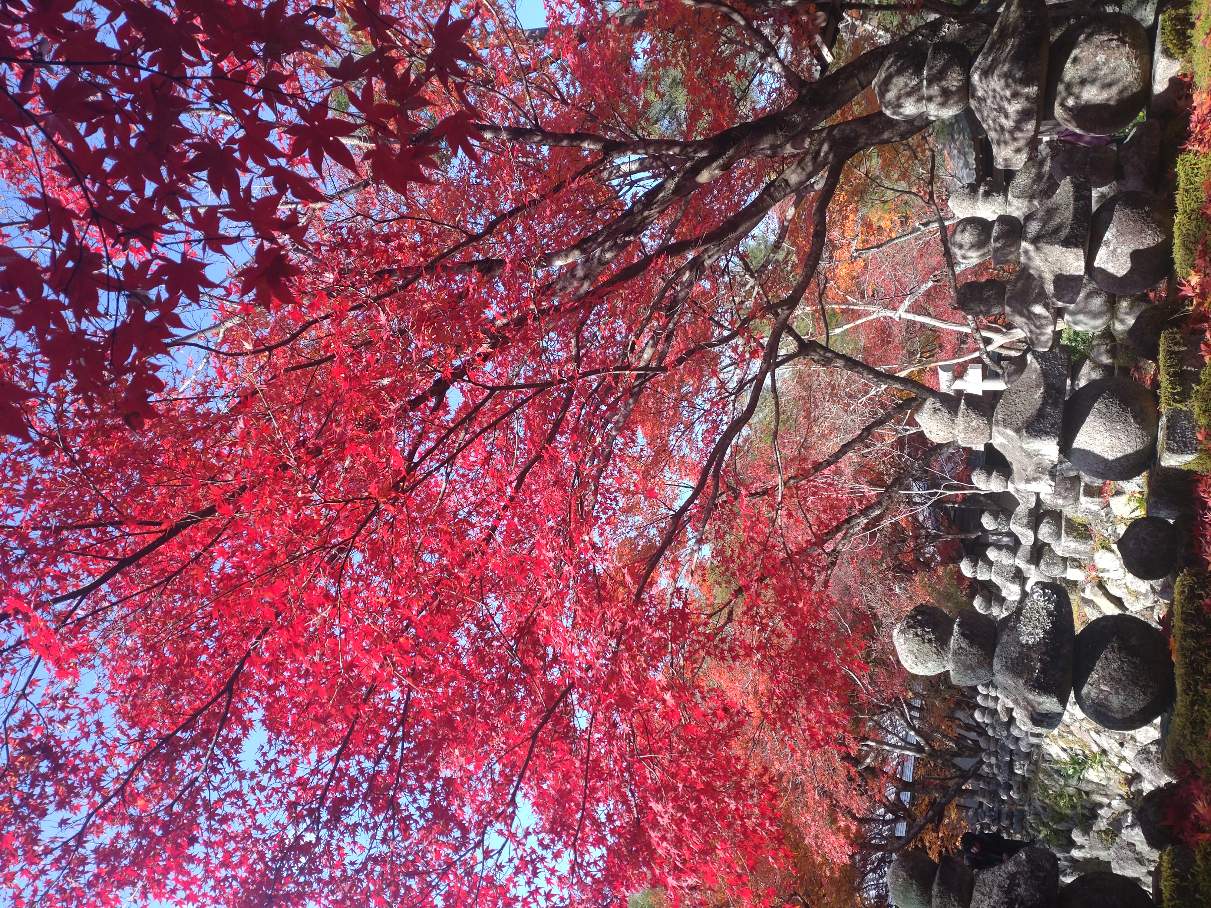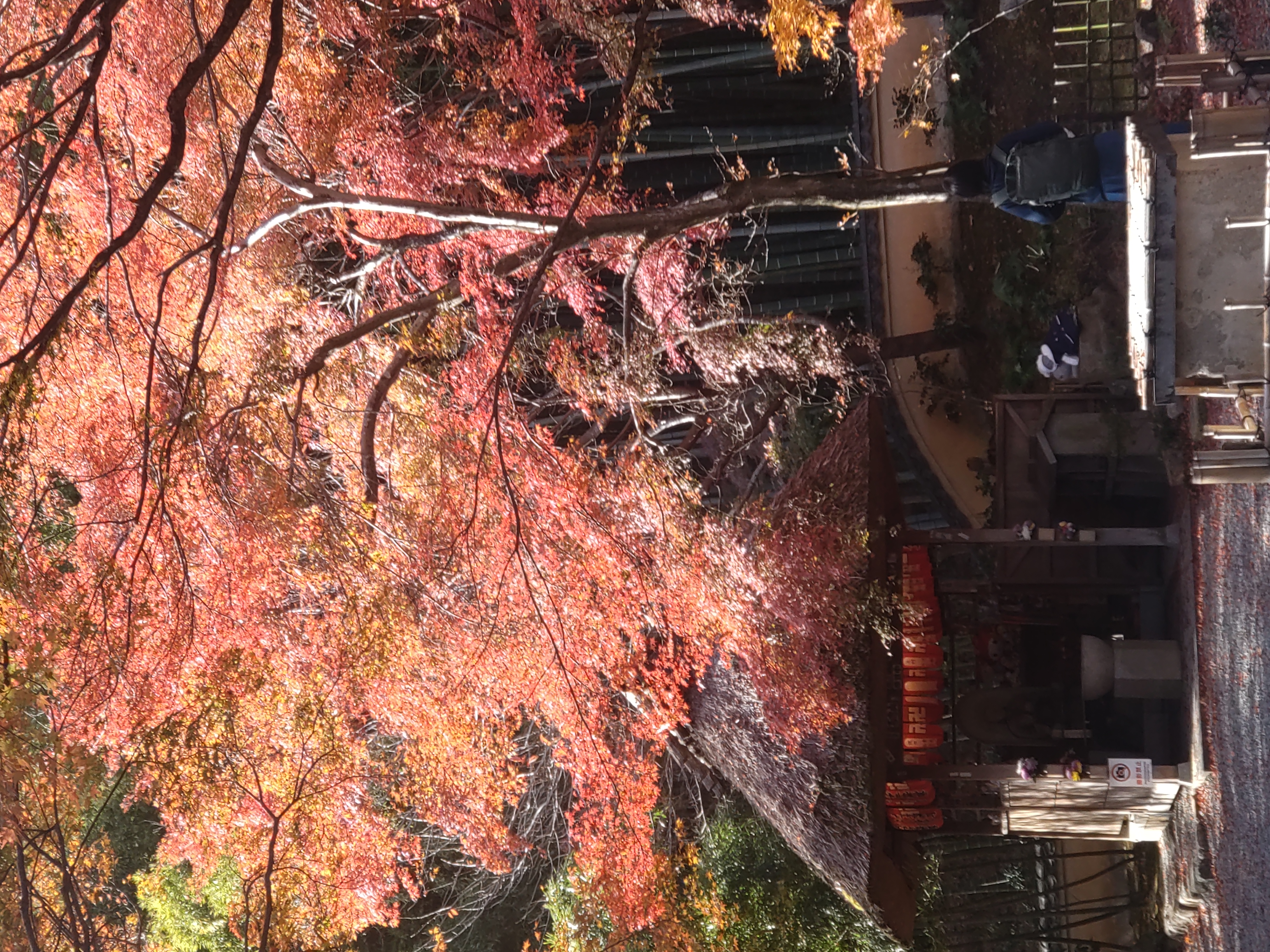 短い青空で出来た色が良い紅葉を写真に収めて最後にしました。気象レーダーで調べると厚い雨雲が近づき、傘を持っていないので駅へ急ぐしかありません。二尊院などへ行く予定は割愛としました。