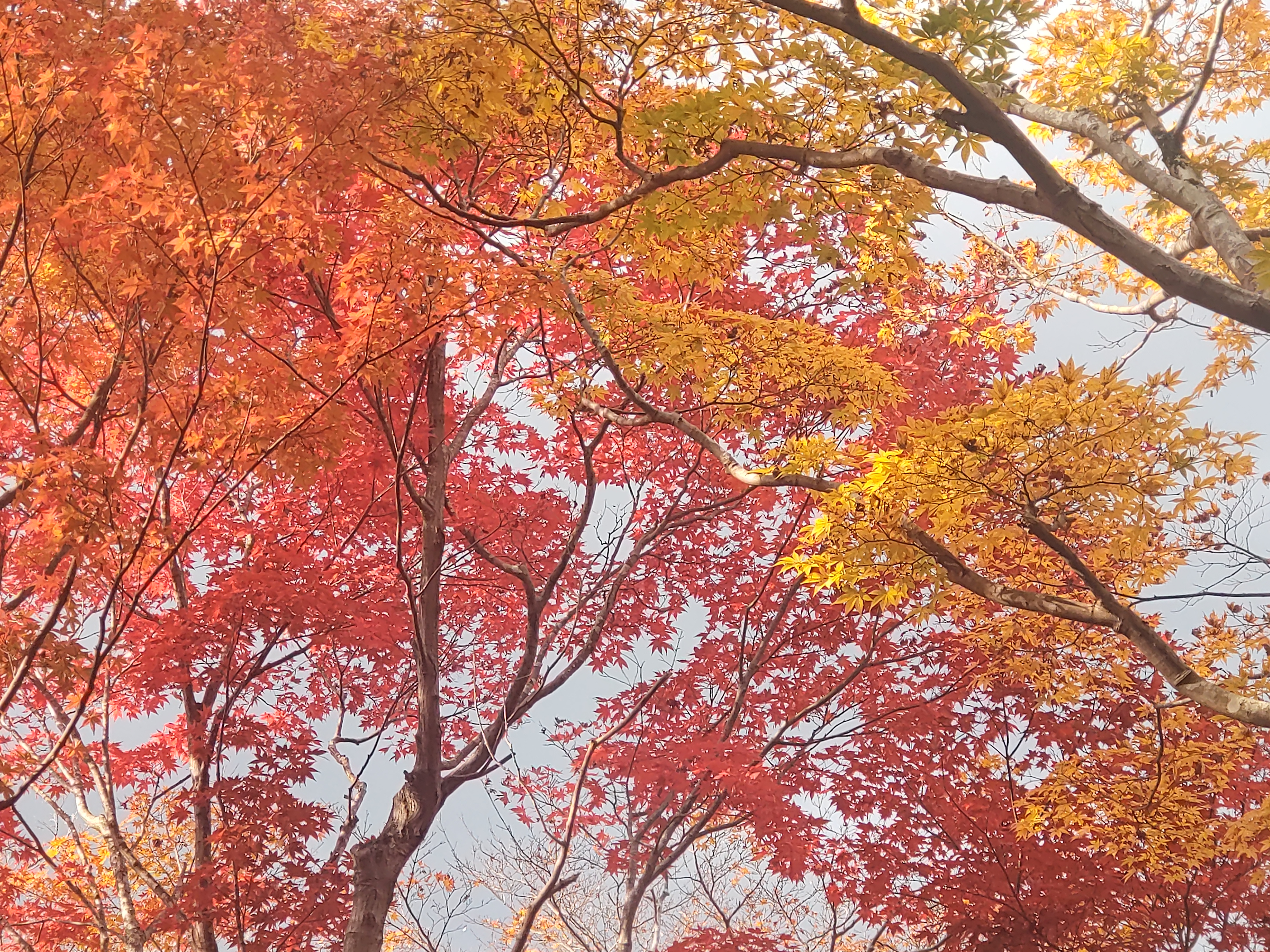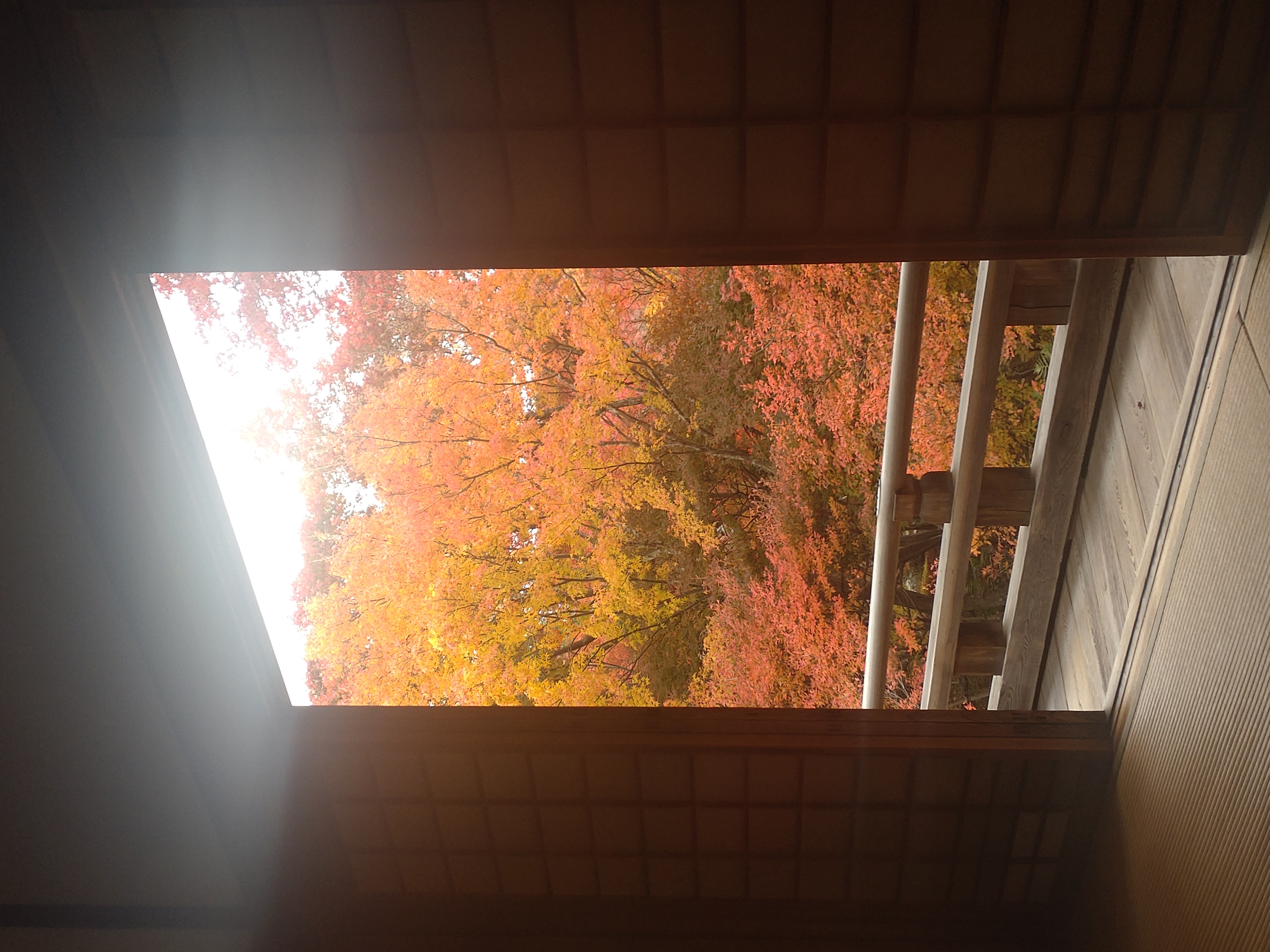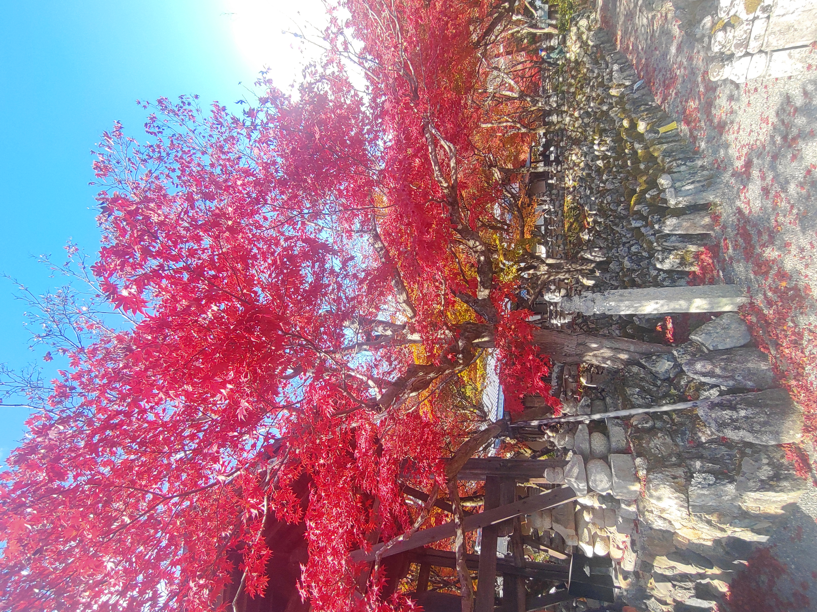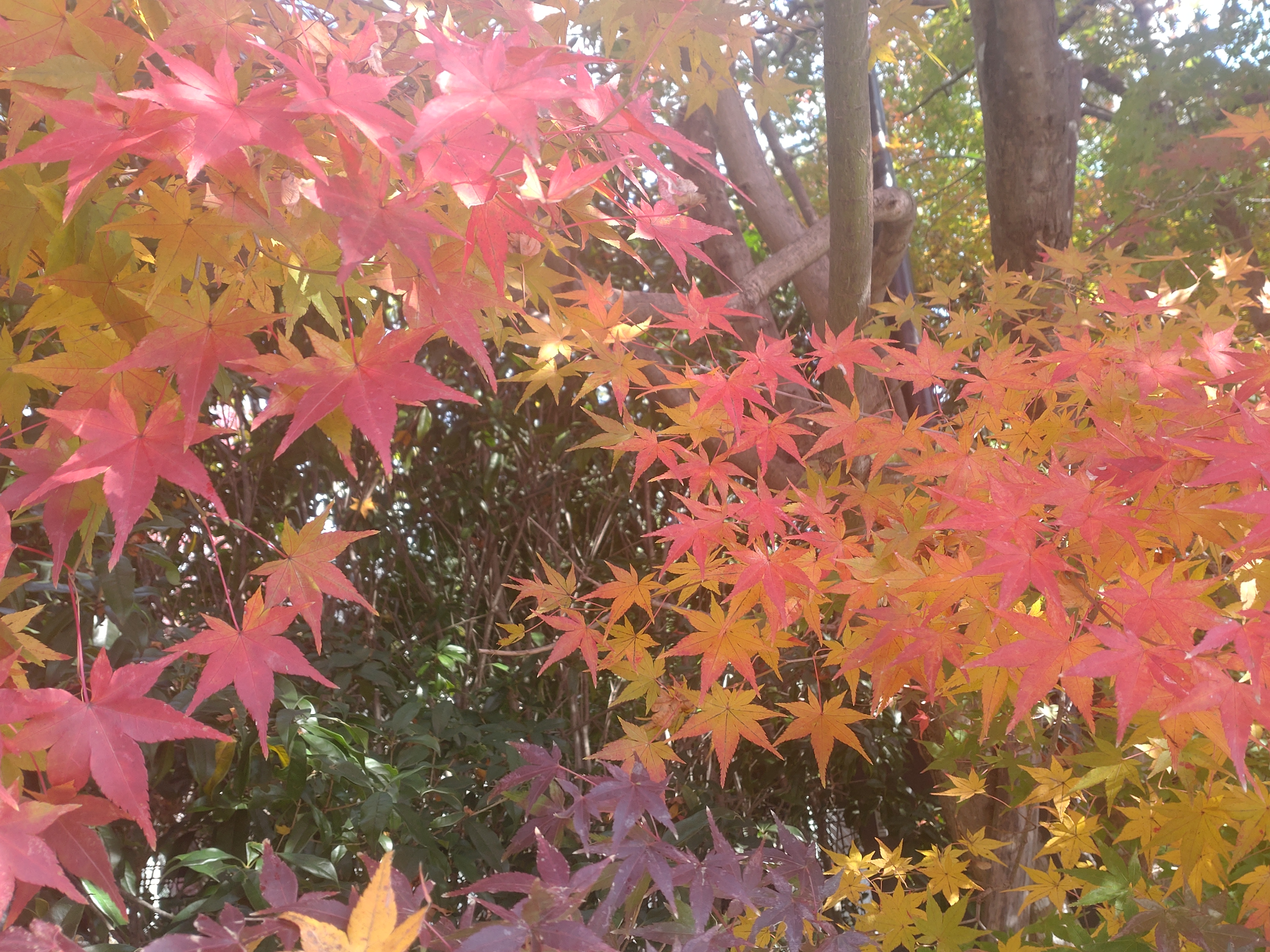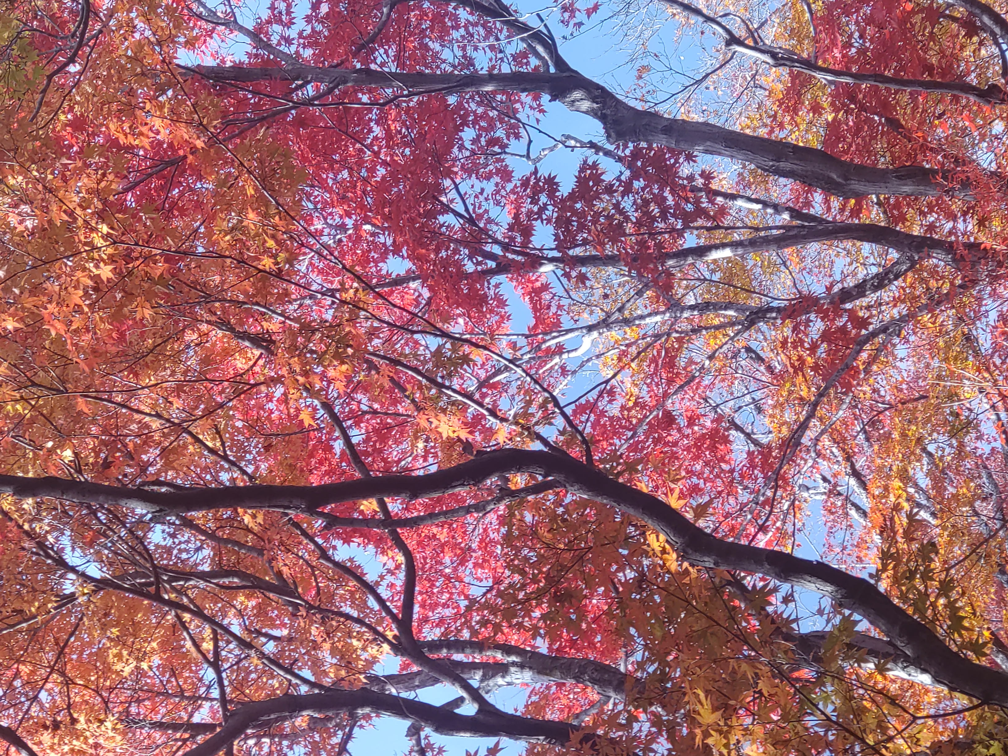 短い青空で出来た色が良い紅葉を写真に収めて最後にしました。気象レーダーで調べると厚い雨雲が近づき、傘を持っていないので駅へ急ぐしかありません。二尊院などへ行く予定は割愛としました。