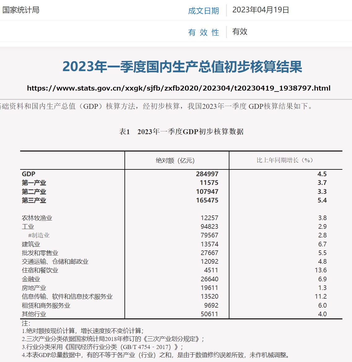 過去の数値を下げて成長率を計算したなら、ウェブで過去発表の数値を下げると思いきや、そのままにしてあります。まず「2023年の第一四半期GDP」です。