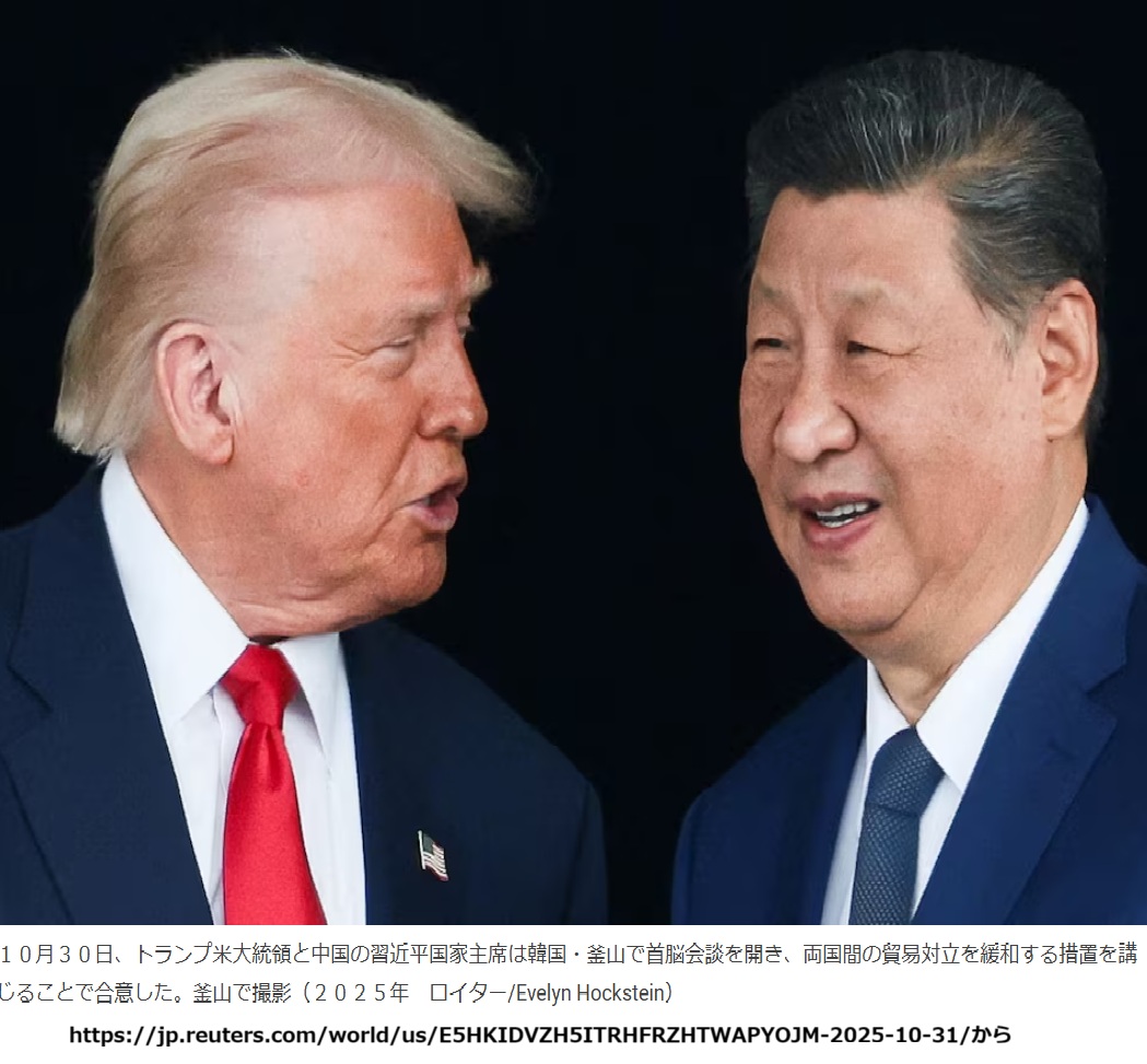 米中貿易交渉の場なら否応なく現実を突き付けられます。レアアース流通規制発表で世界は中国離れを急速に進めており、米国側は「来年には対策が整うからレアアースの交渉カードが切れるのは今年限り」と脅しました。その結果はロイターの《情報BOX:米中首脳会談、貿易対立緩和で合意した内容》に詳しいです。