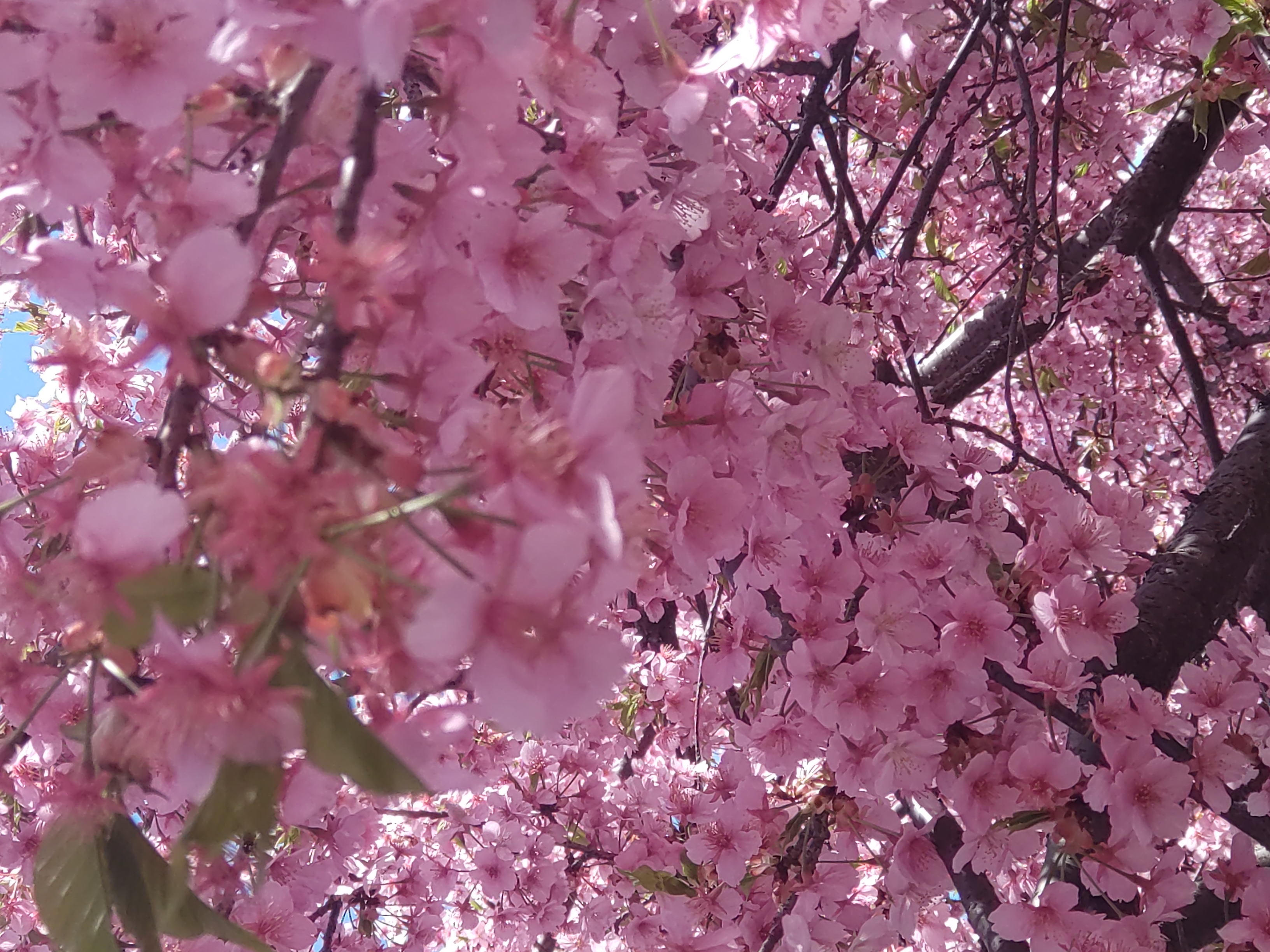 2月から咲き始める静岡県南部の河津桜は今年も数十万人の客を集めたようですし、3月になって京都の市街にも何本か集まった鑑賞スポットができ訪日外国人に話題になり、伏見区の「淀の河津桜」は規模が大きくて連日賑わいました。河津桜は1955年に河津川沿いで発見された新しい品種で、1974年に「カワヅザクラ」と正式命名され、翌年には河津町の木に指定されたそうです。一方、日本の桜の7、8割を占めるソメイヨシノは江戸時代にエドヒガンとオオシマザクラをかけ合わせた栽培種です。ソメイヨシノの儚いほどの白さと、南国的な濃いピンクの河津桜の姿を過去の撮影写真で対比しましょう。